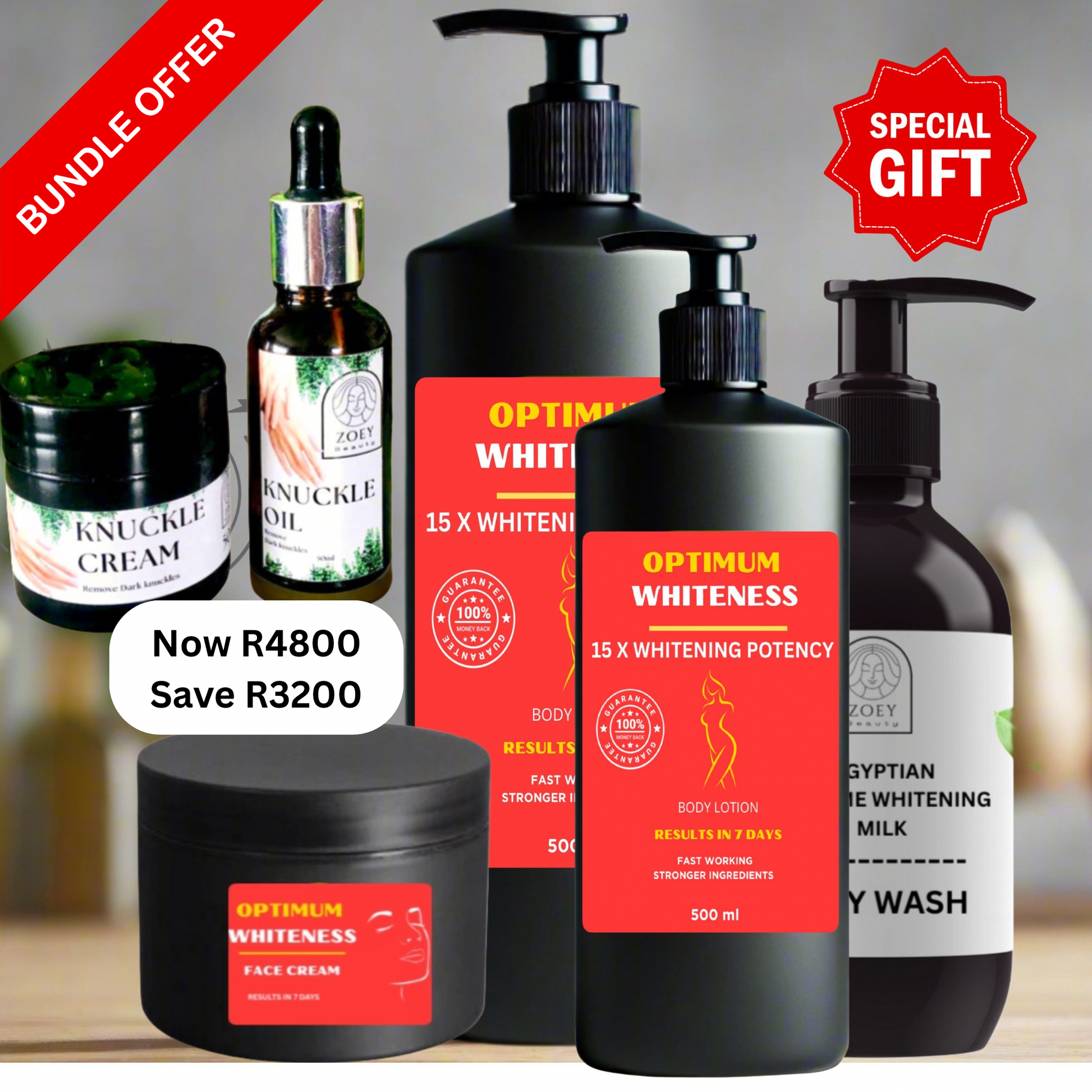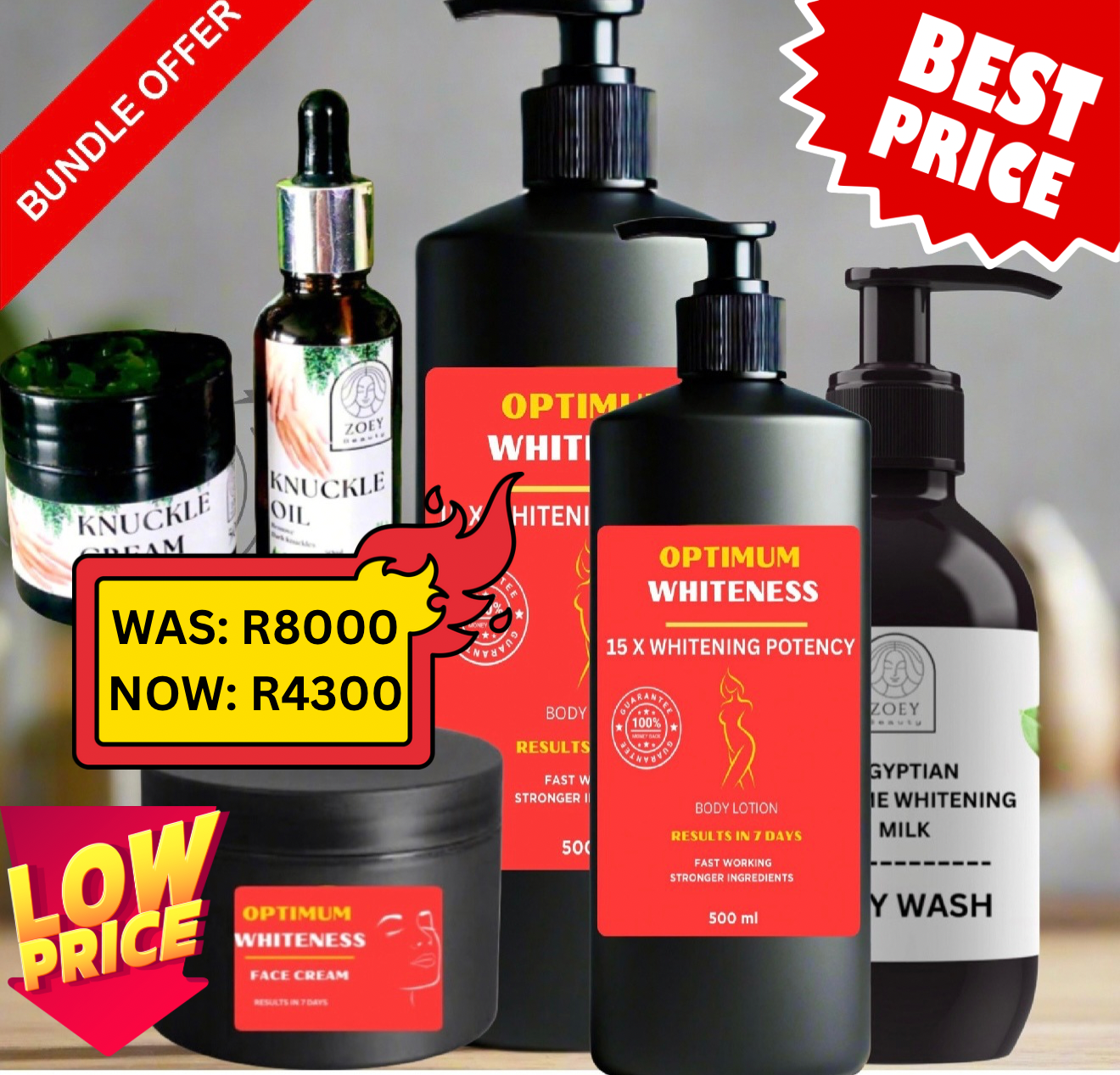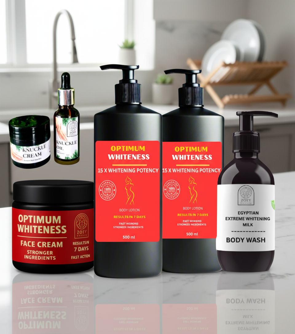 Achieve radiant, even-toned skin with our Optimum Whiteness Skin Whitening Lotion—expertly formulated with advanced brightening agents and nourishing ingredients to deliver visible results in as little as 7–14 days. Results may vary depending on skin type.